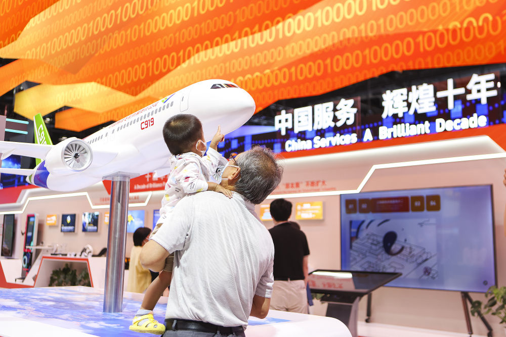 观众在服贸会国家会议中心参观中国服务贸易成就展(2022年9月5日摄)。新华社记者 郝昭 摄