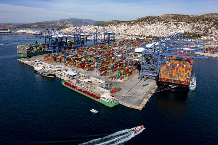 这是希腊比雷埃夫斯港集装箱3号码头(2022年2月19日摄)。新华社发(中远海运港口比雷埃夫斯码头有限公司供图)