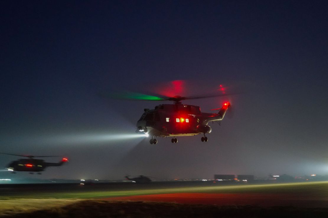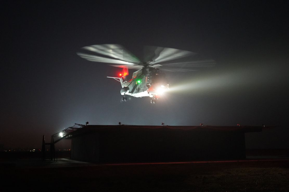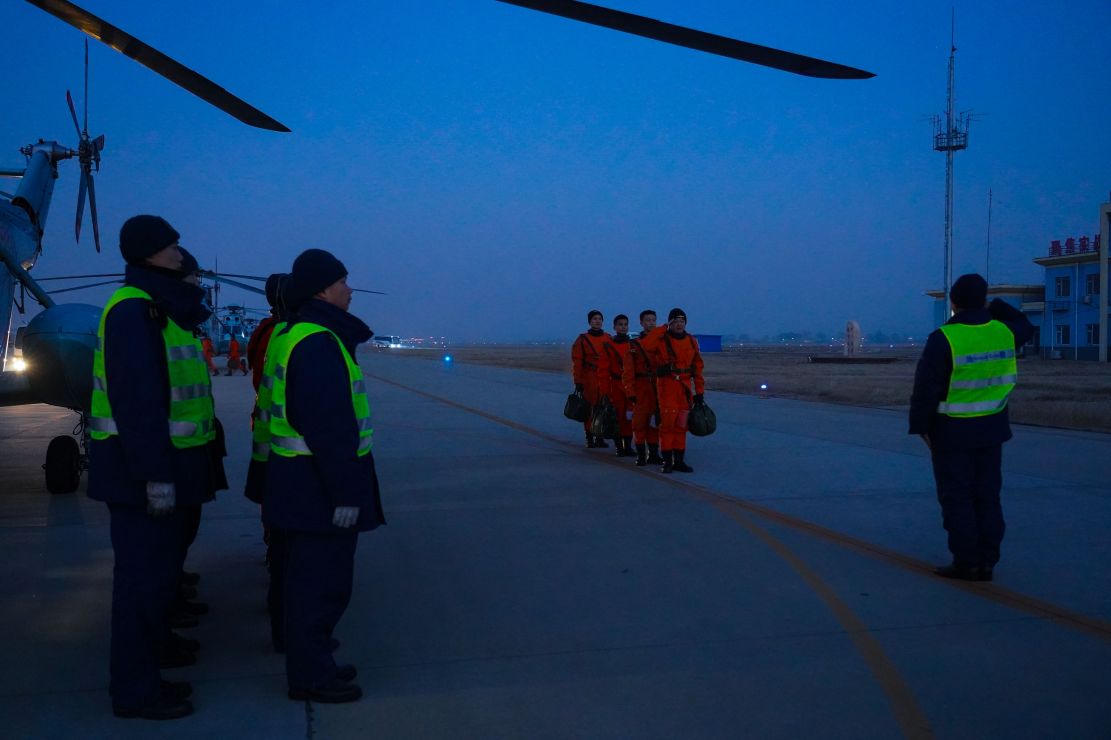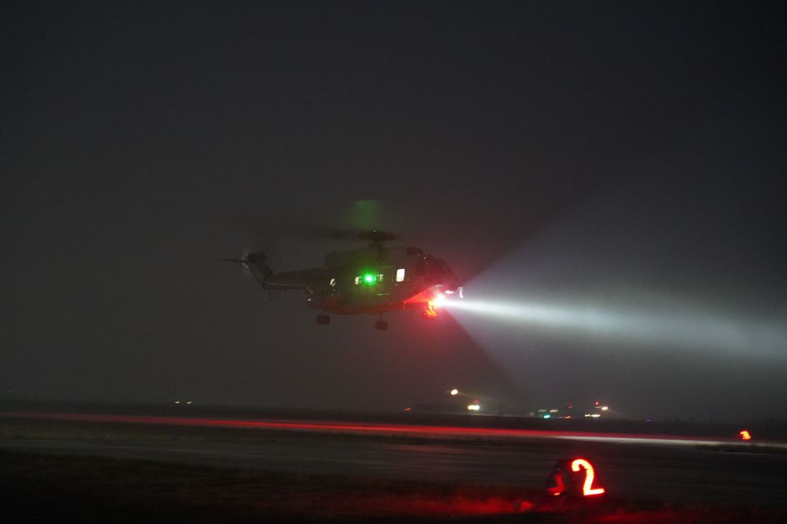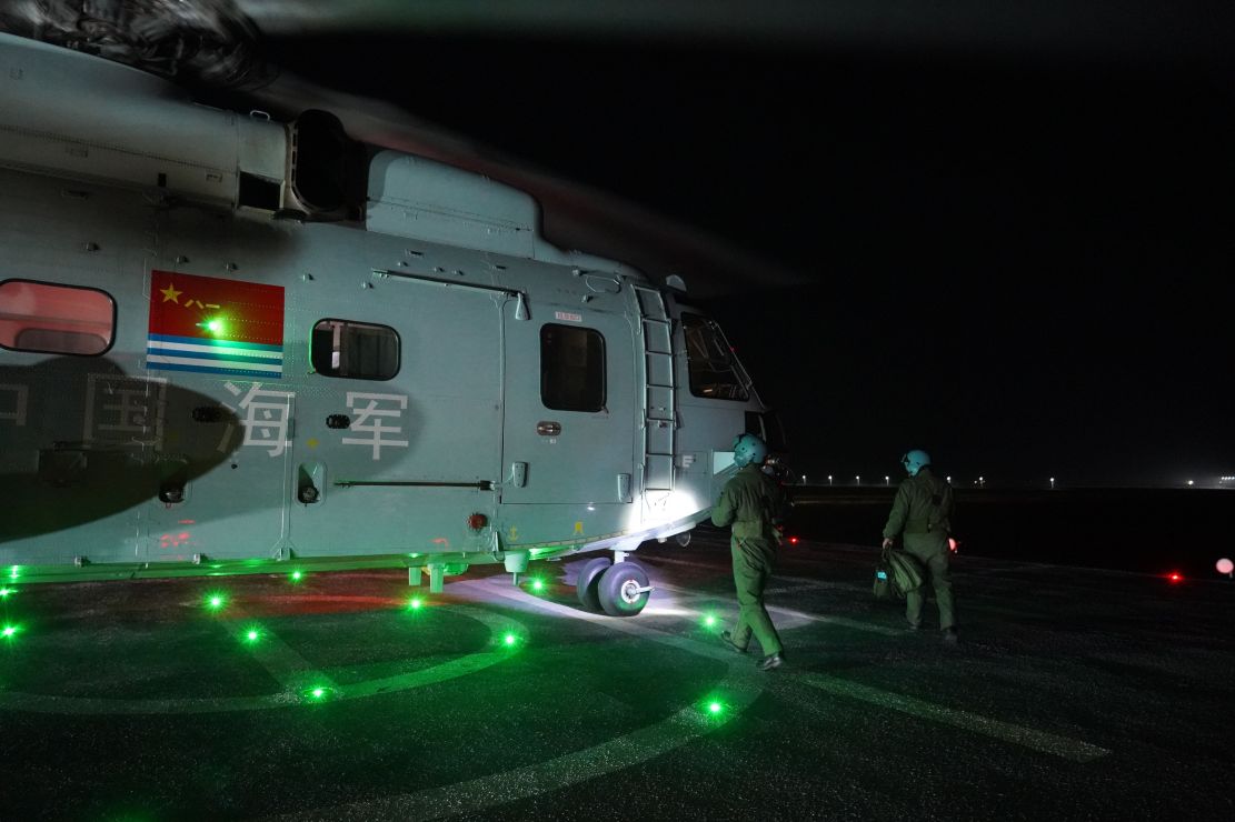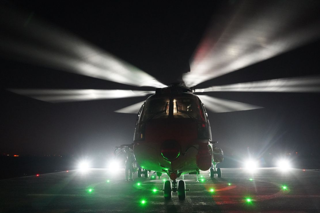 接近着陆点,打开着陆灯,明亮的灯光在黑夜中照亮前进航向,数架直升机抵达悬停点稳定悬停。另一侧起降平台上,飞行员围绕直升机仔细检查,确保无跑冒滴漏等安全隐患,寒夜练兵场迅速掀起火热“练兵潮”。