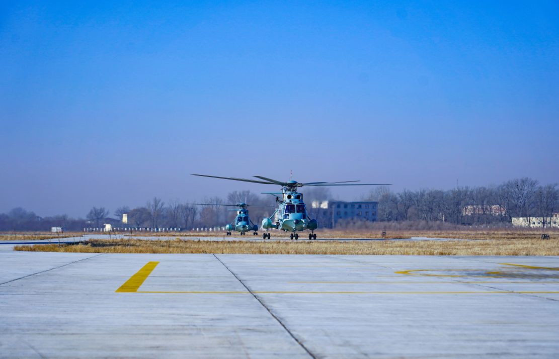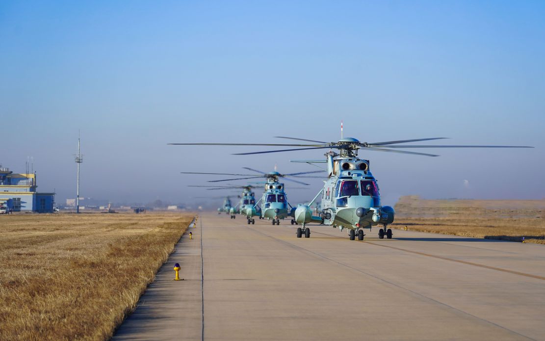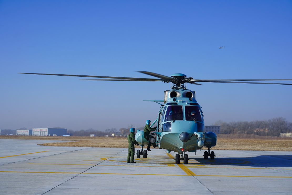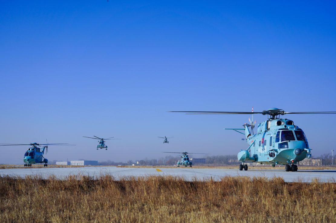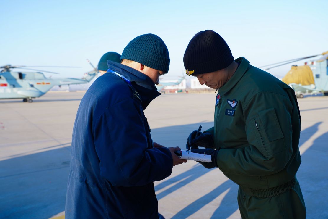 交接飞机、检查接收、签单放飞,开飞前工作准备就绪,只待指挥员一声号令。指挥员下达起飞指令,战机迅速滑入跑道,悬停等待、增速起飞,直升机迅速进入训练空域。