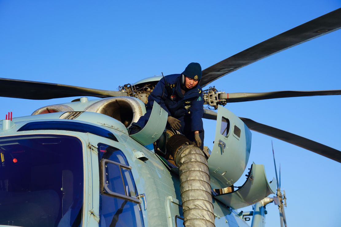 随着进场一声哨响,机务官兵迅速扎进外场保障一线,持卡维护、燃油补给、通电检查……切实确保直升机准备良好,为飞行安全提供坚实保障。