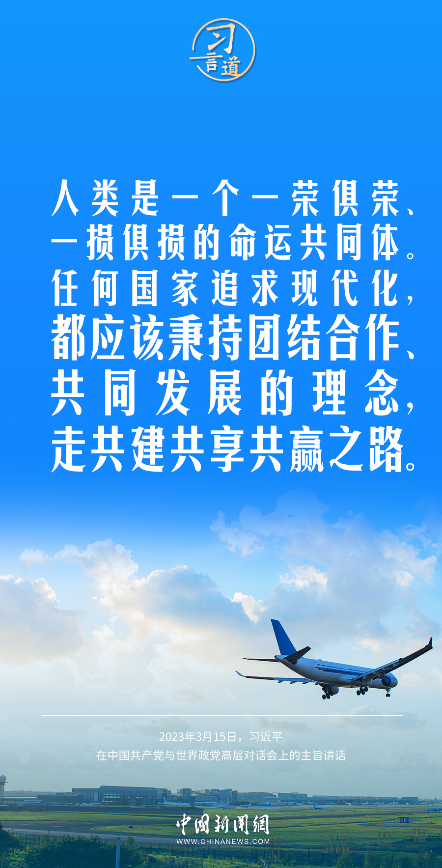 当前,世界进入新的动荡变革期。习近平主席多次强调“合作共赢”的中国主张,倡导各国一起维护世界和平、促进共同发展。