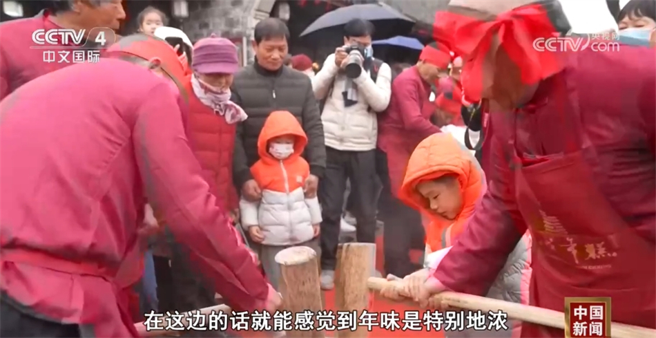 在浙江宁波慈城镇,打年糕火热进行中。