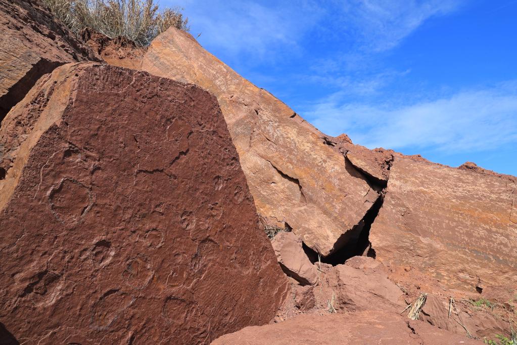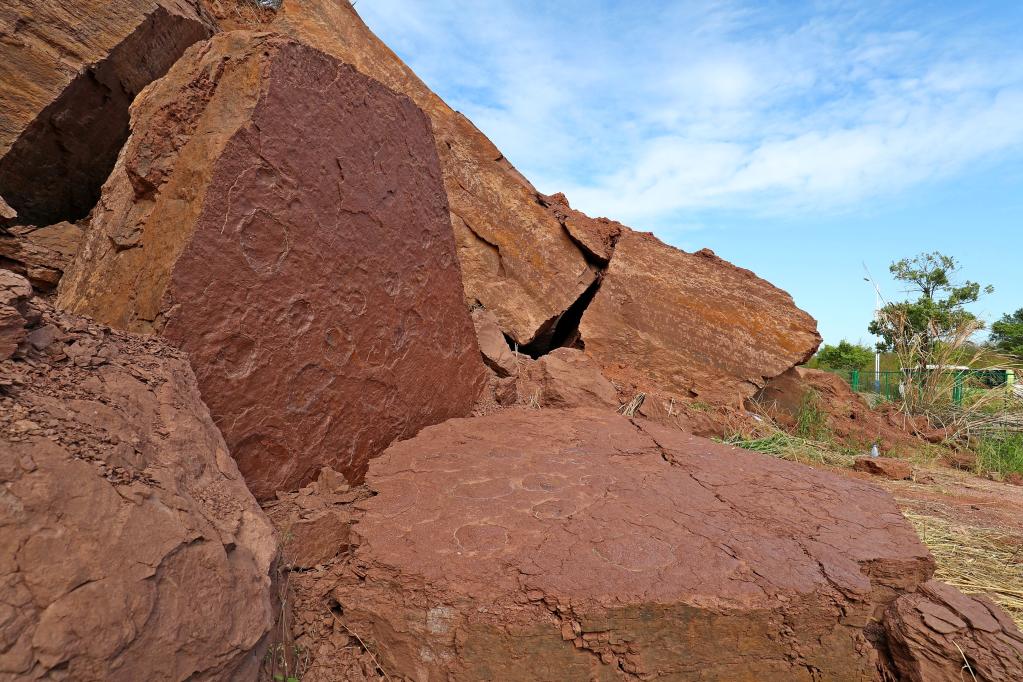 此次科考现场考察发现的正负模(对板)出露的化石中,包括一块面积约15平方米的标本,其上保存了蜥脚类和兽脚类等多种恐龙足迹,以及代表湖相沉积环境的清晰对称波痕构造。据初步统计,相关化石上集中了6种恐龙的30多个足迹,保存的数量、清晰度均比较罕见,对研究晚白垩世恐龙的生活习性、生存环境等具有重要意义。