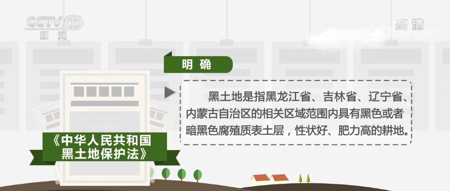 《中华人民共和国黑土地保护法》明确黑土地是指黑龙江省、吉林省、辽宁省、内蒙古自治区的相关区域范围内具有黑色或者暗黑色腐殖质表土层,性状好、肥力高的耕地。